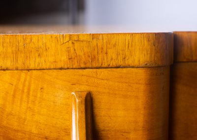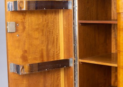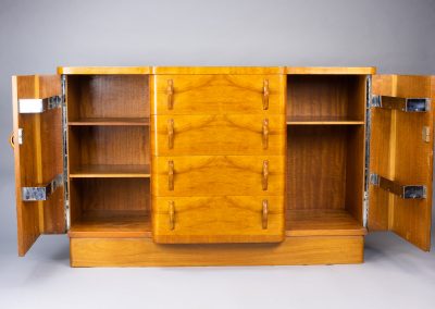 The cupboard doors open right out to reveal chrome-plated shelves for bottles allowing this beautiful sideboard to double as a cocktail cabinet.