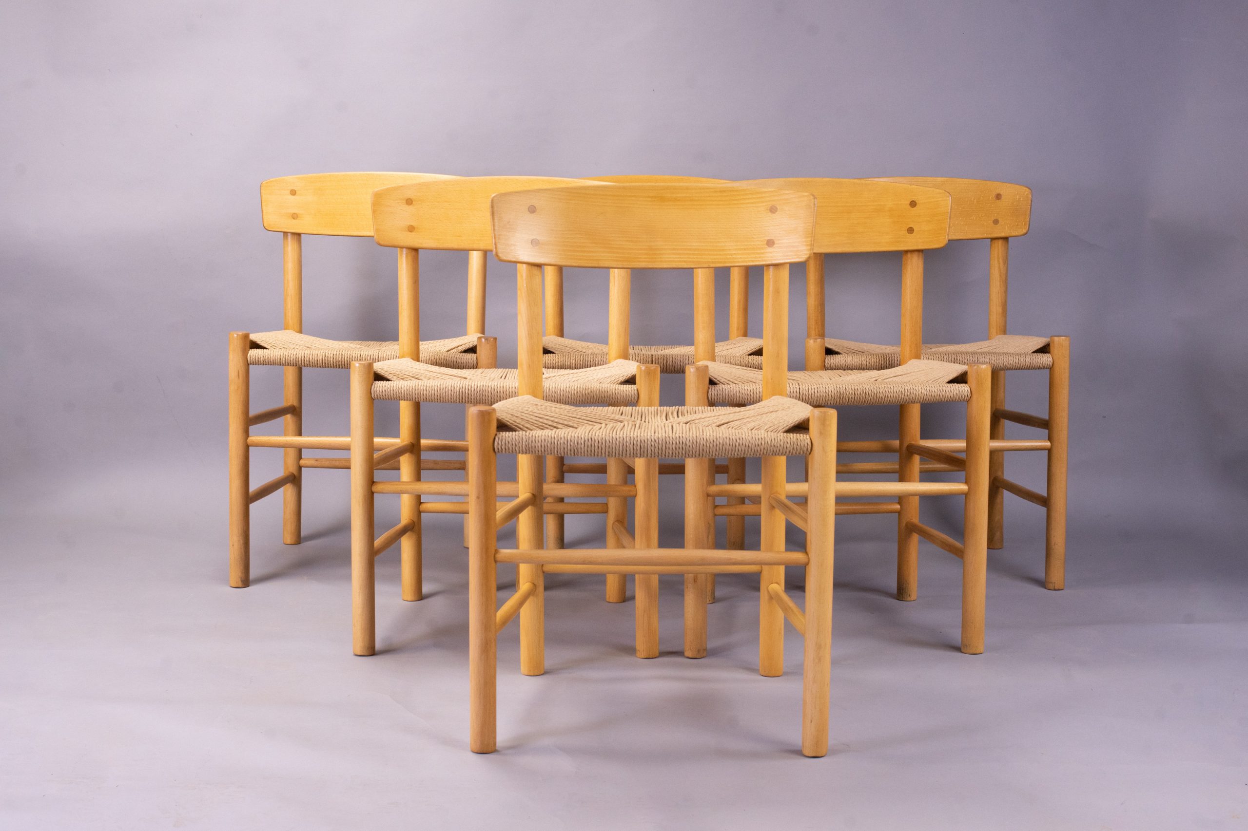 A set of 6 Model J39 chairs designed by Børge Mogensen in 1947 and produced in Denmark in the 1960s by FDB Møbler.