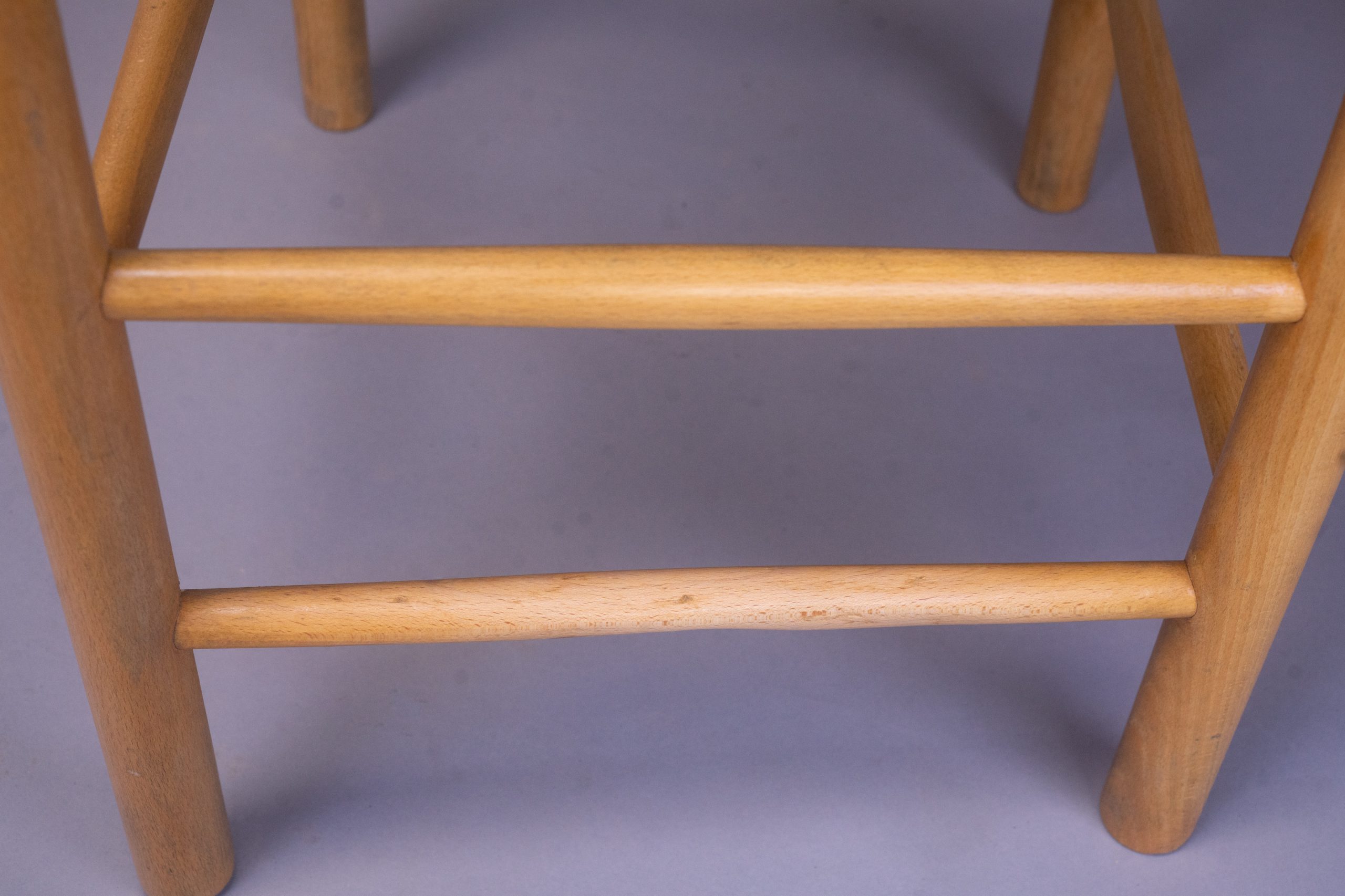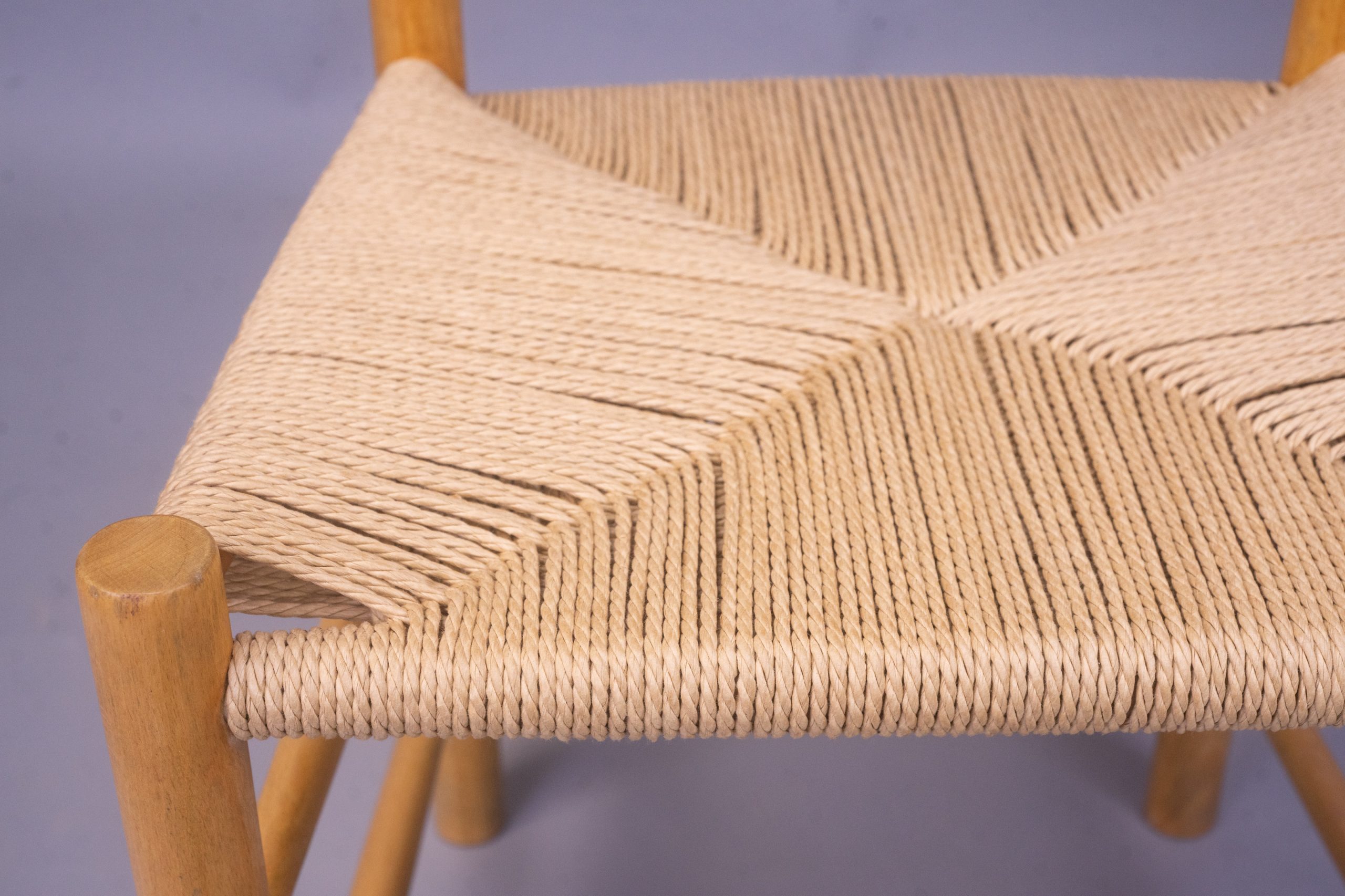 Fully restored solid beechwood frames with new laced papercord seats woven in the traditional pattern.