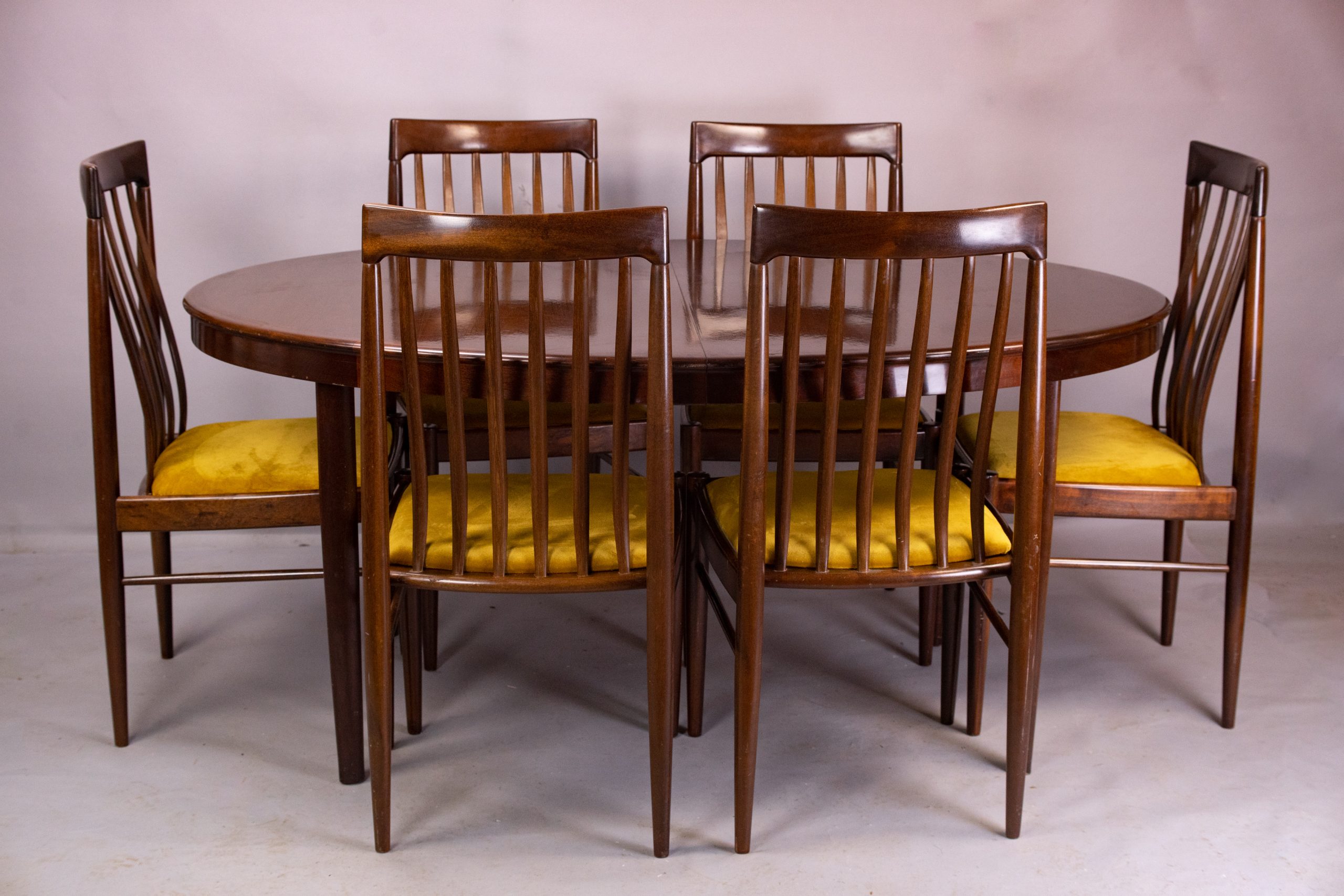 The six chairs can all be fitted around the oval table in its unextended form; but it also extends from 165cm to an impressive maximum of 265cm with two extension leaves to accommodate more seating or just more space for elbows and dishes.