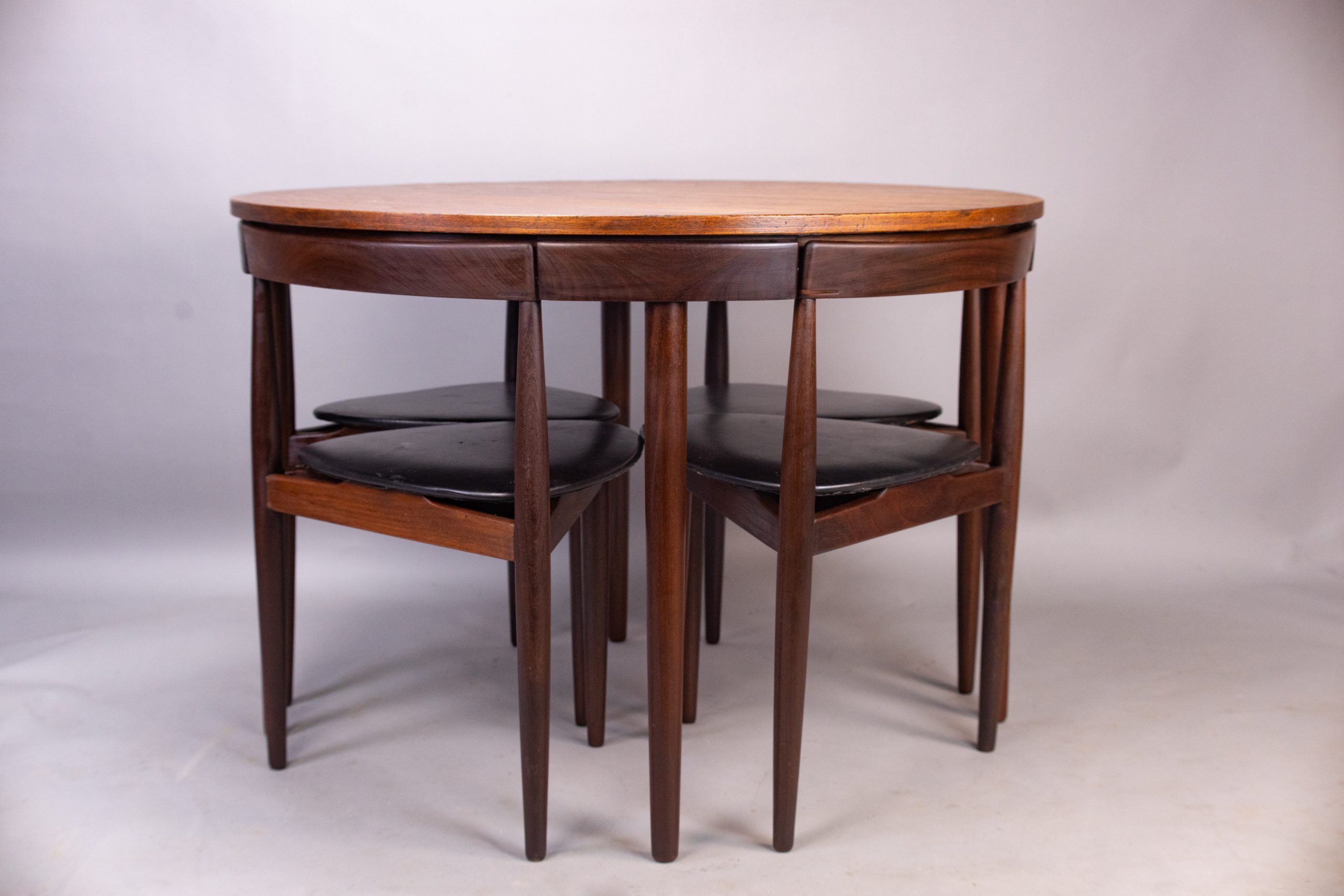 Teak dining table and 4 chair set ‘Roundette’ model designed by Hans Olsen and produced by Frem Røjle 1960s.