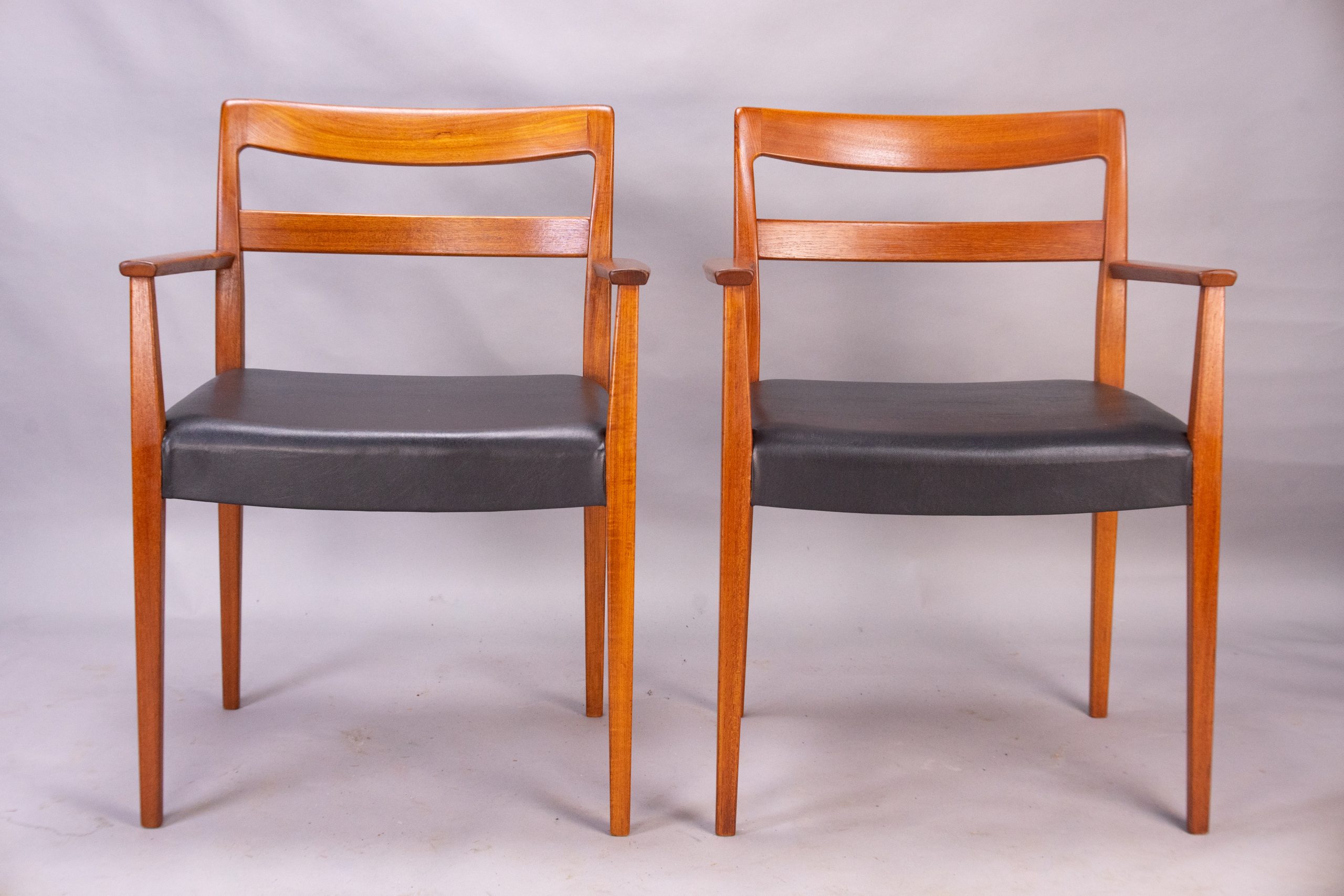 A pair of vintage teak carver dining chairs with arms designed by Nils Jonsson for Hugo Troeds.