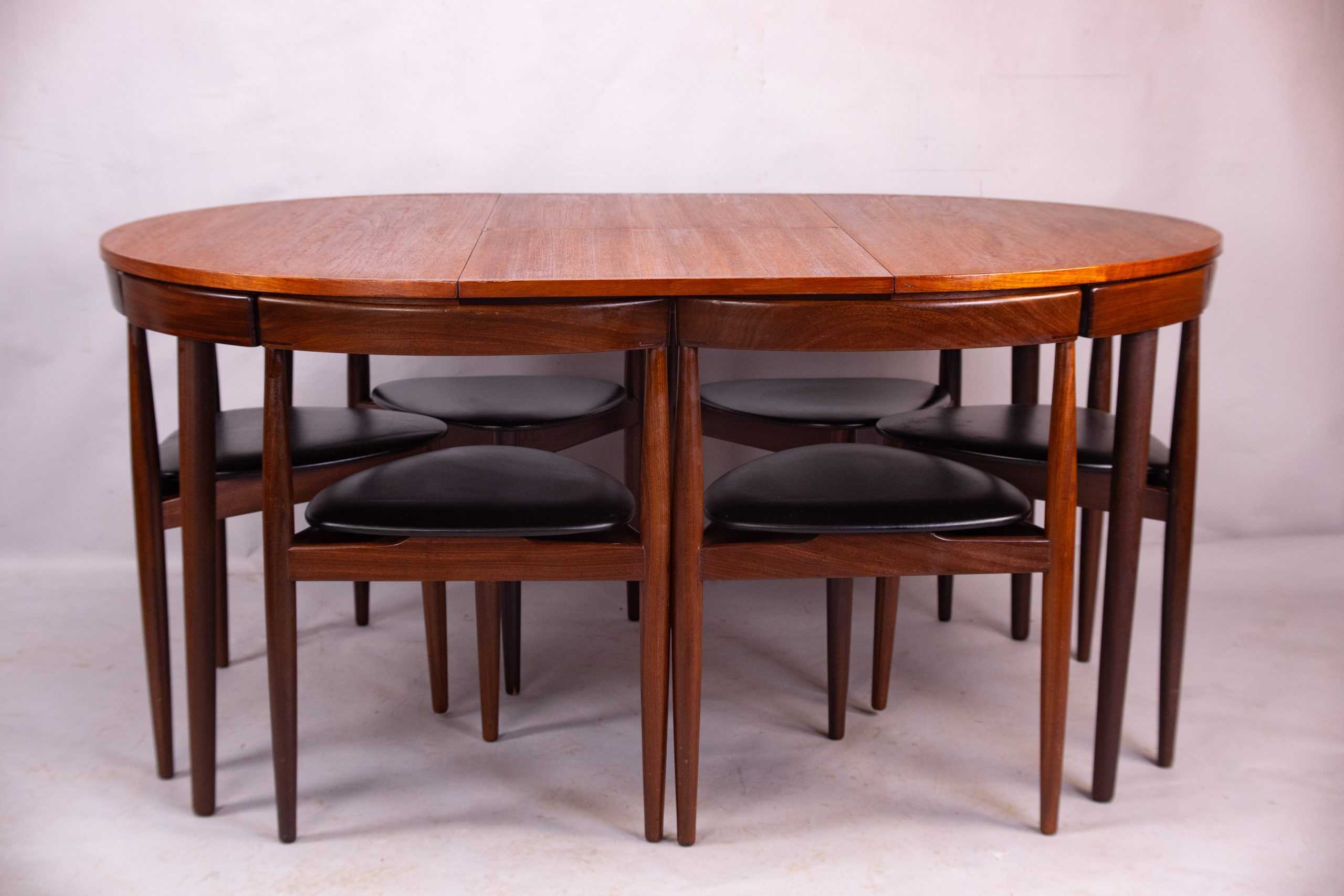 A classic Danish teak dining table and 6 chair set ‘Dinette’ model designed by Hans Olsen and produced by Frem Røjle in the 1960s.