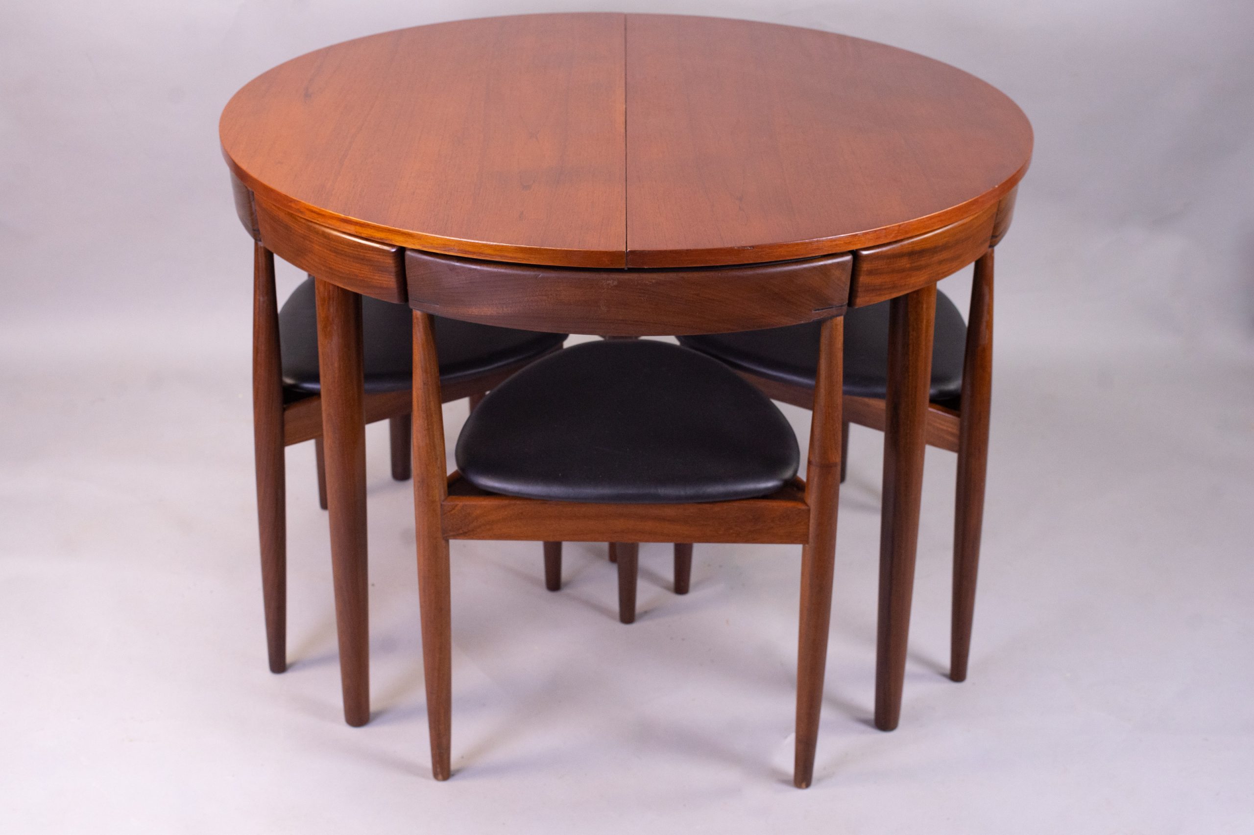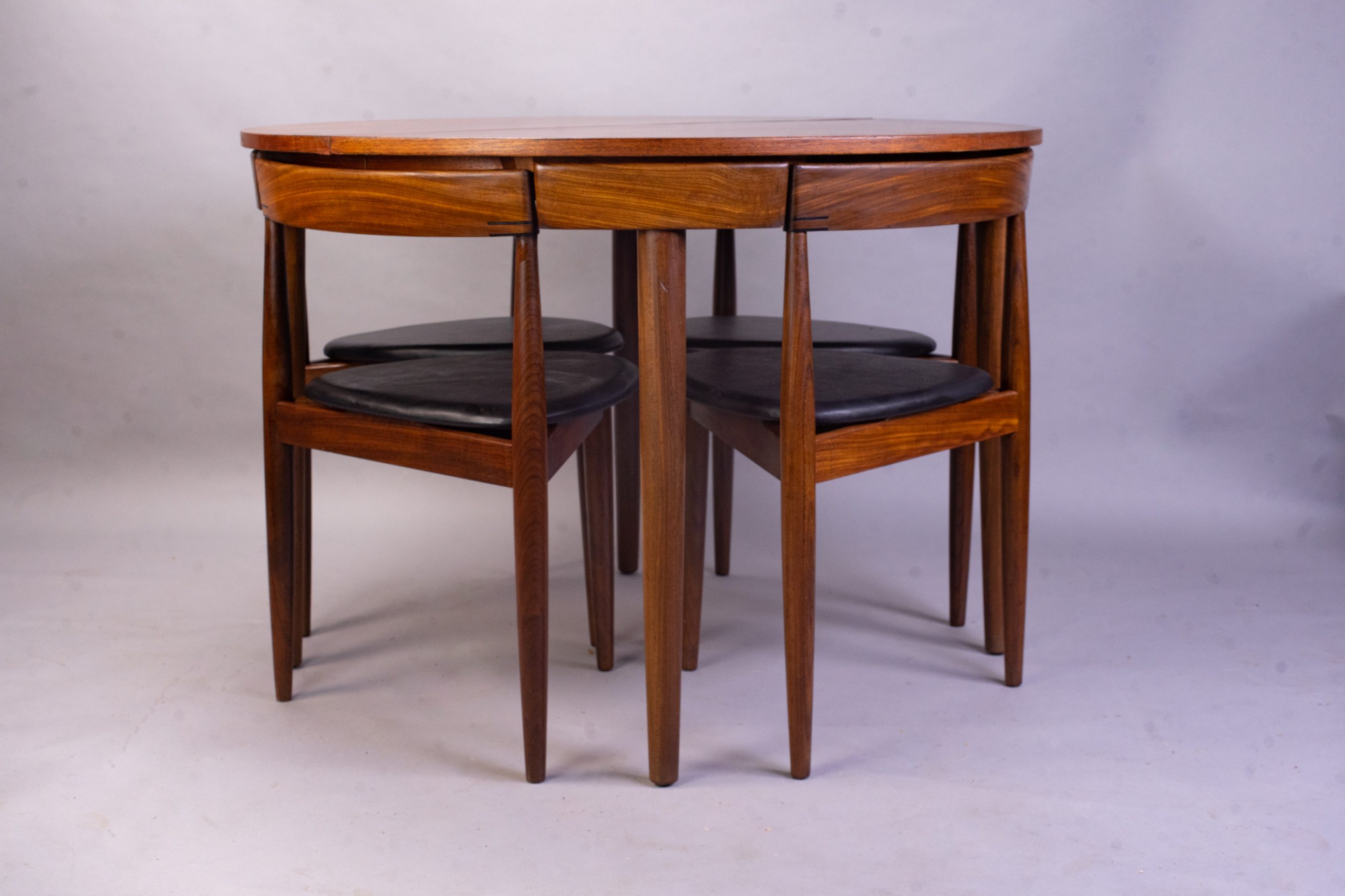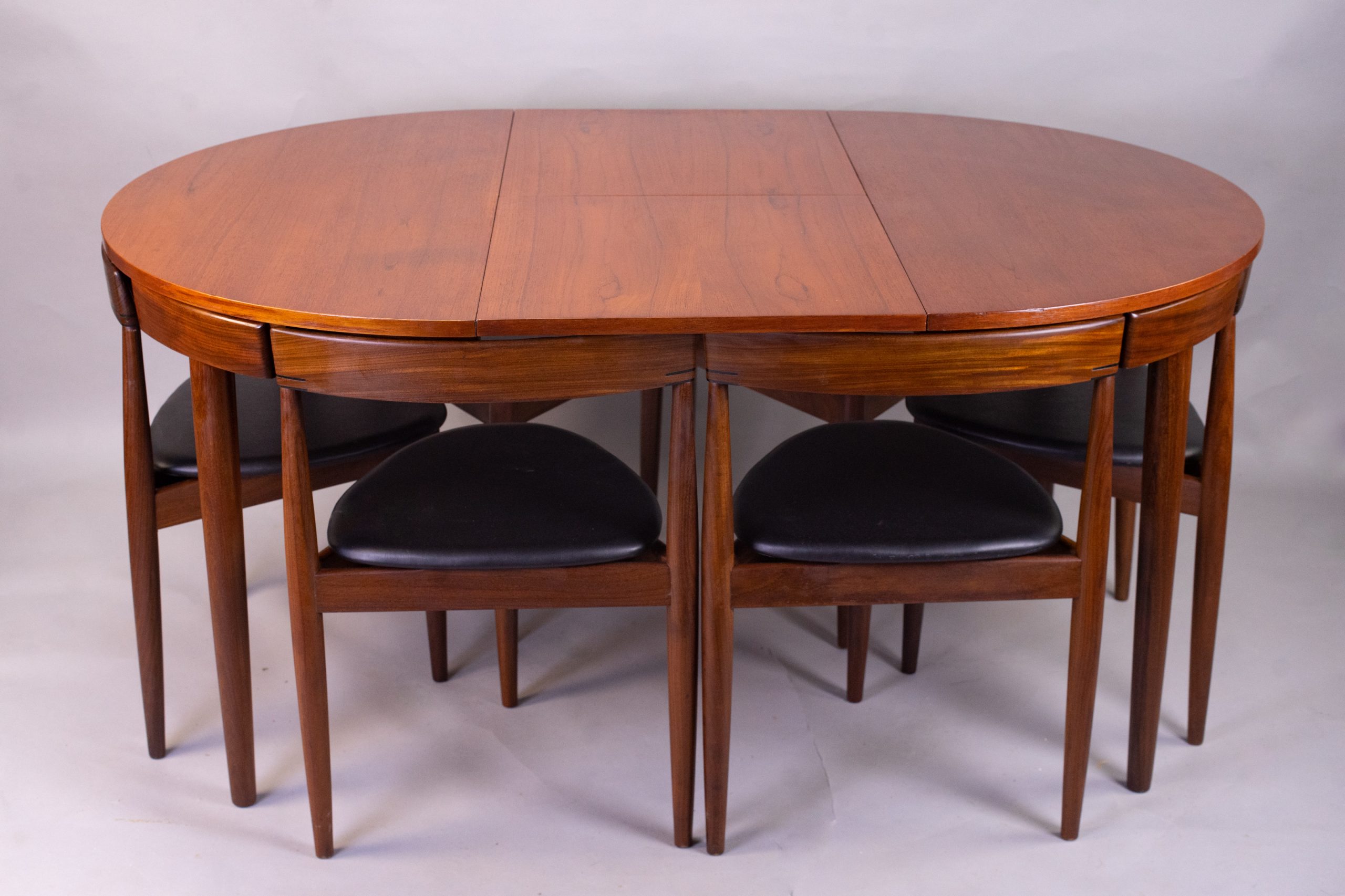 A classic Danish teak dining table and 6 chair set ‘Dinette’ model designed by Hans Olsen and produced by Frem Røjle in the 1960s