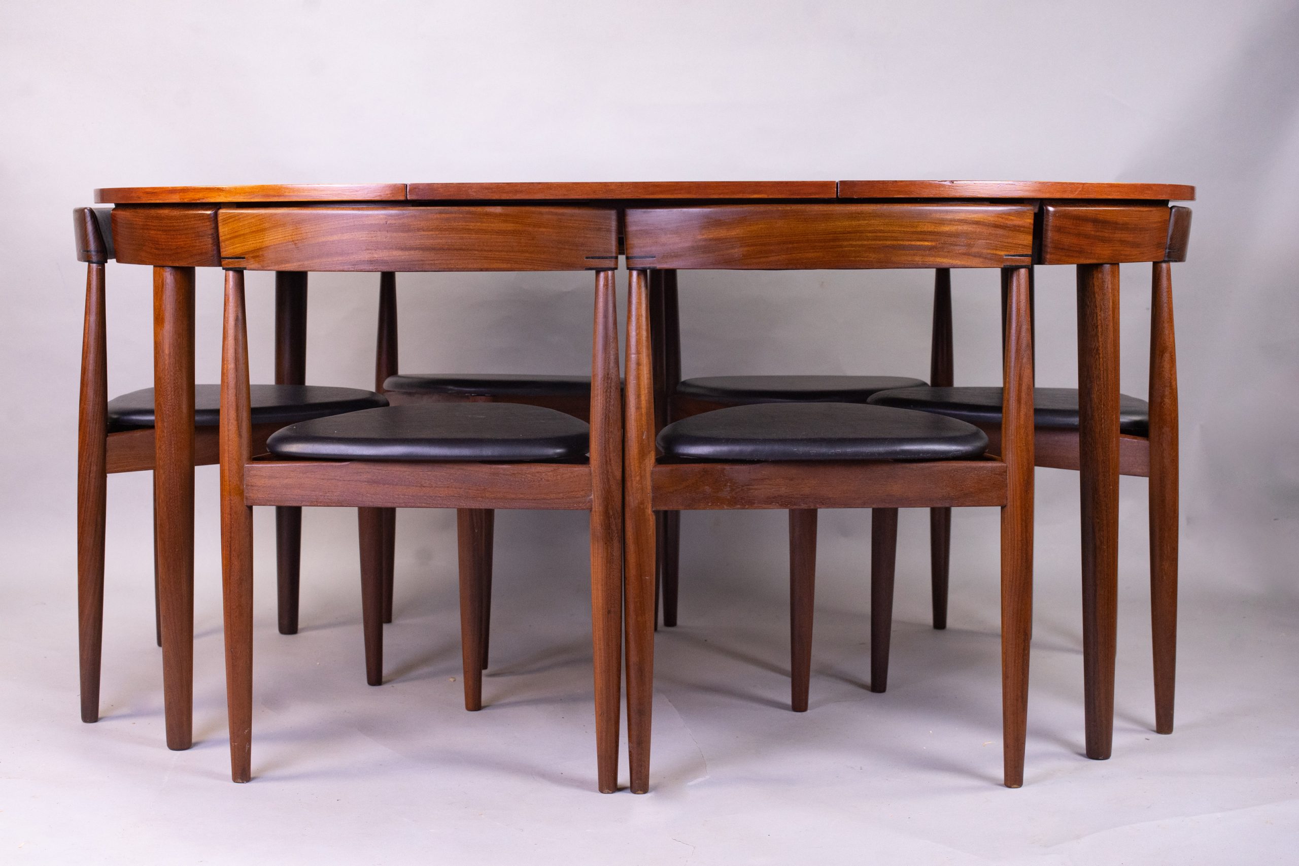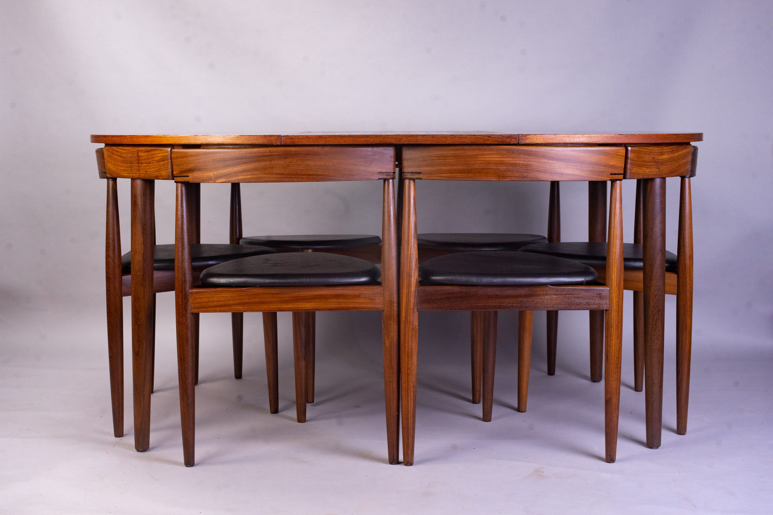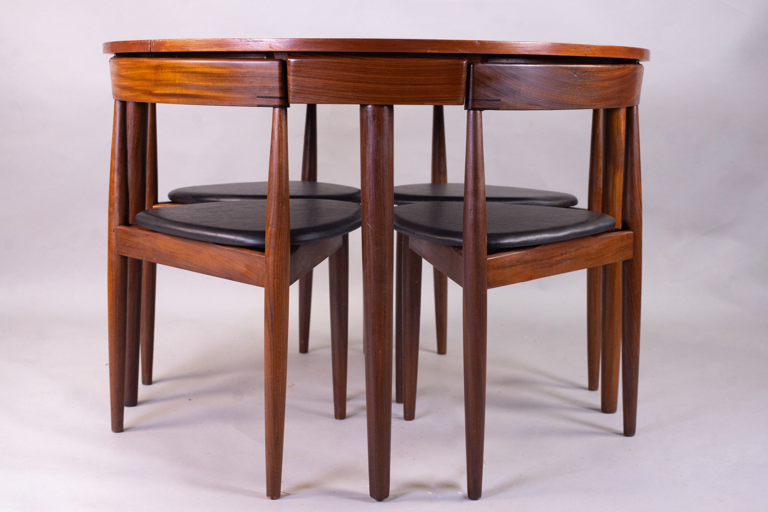 A classic Danish teak dining table and 6 chair set ‘Dinette’ model designed by Hans Olsen and produced by Frem Røjle in the 1960s