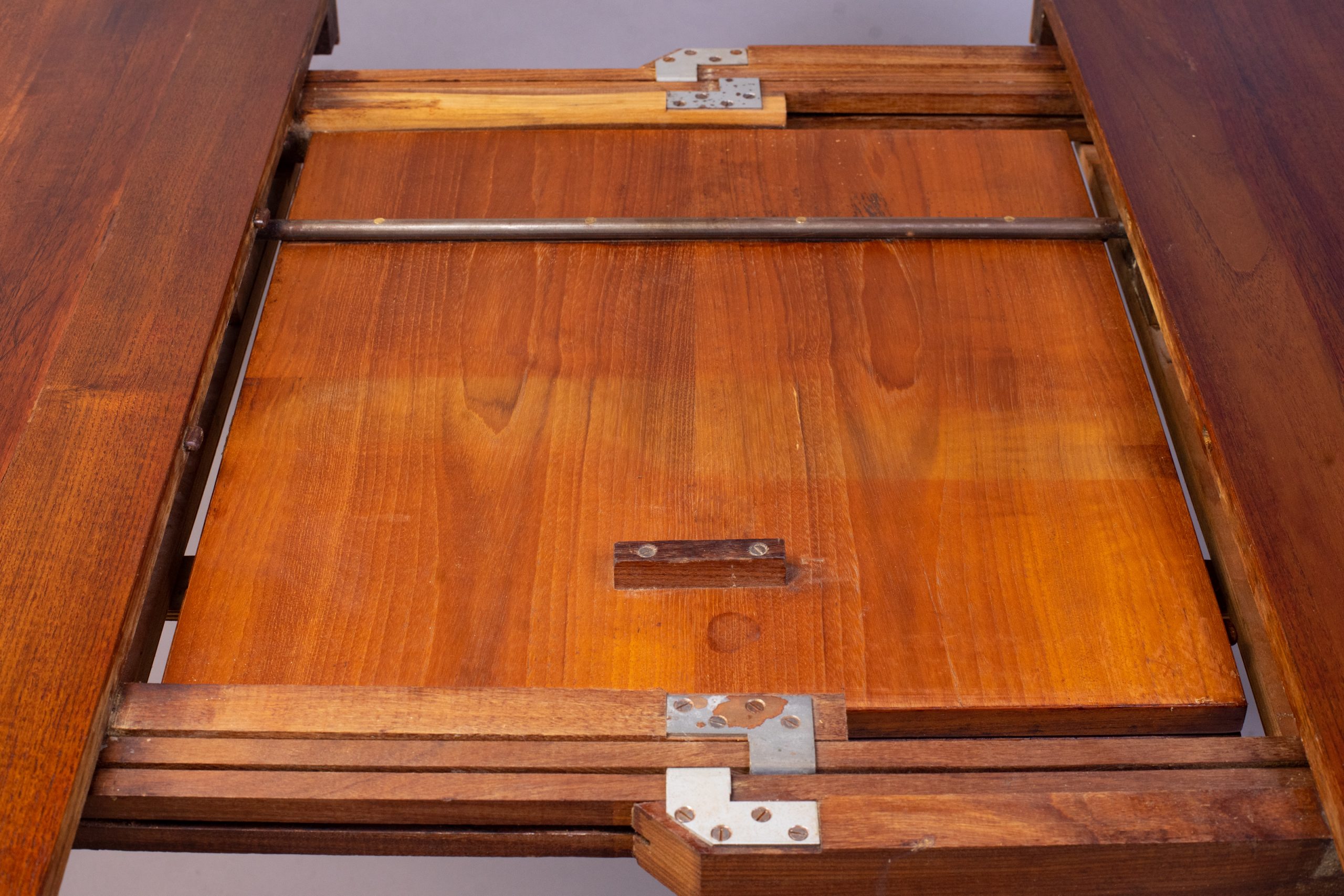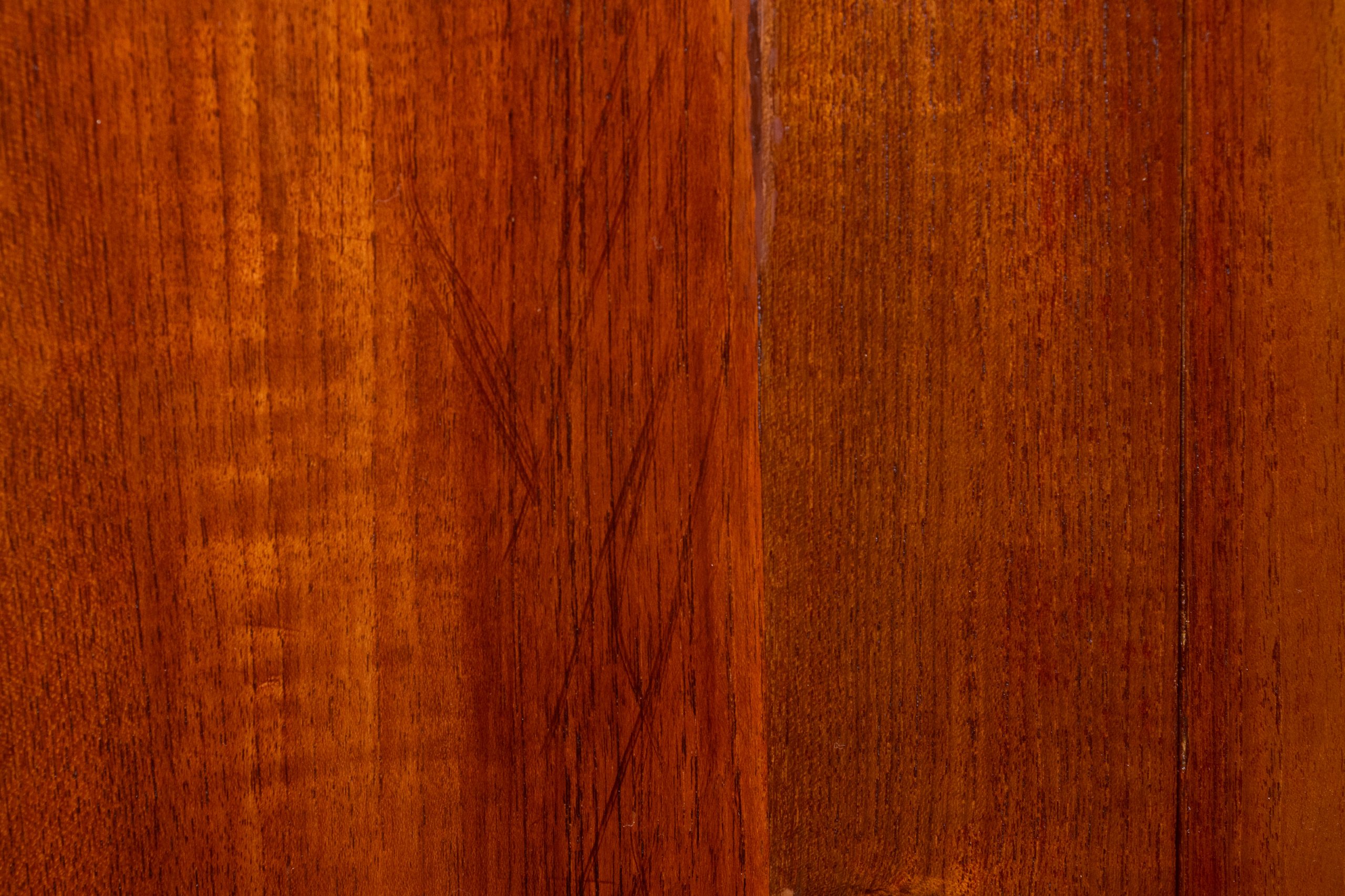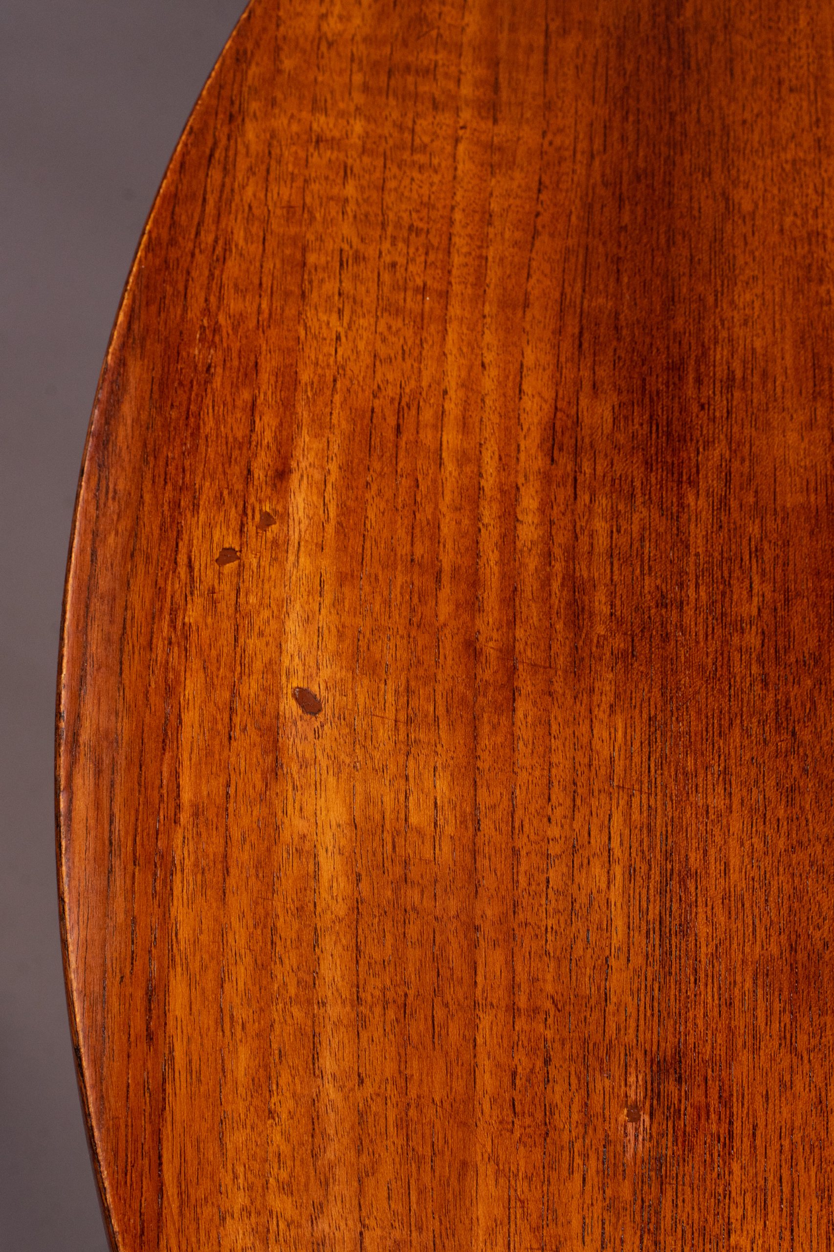 Light signs of wear consistent with age. One chair has a historic repair which has been reinforced where the backrest joins the legs (see photo). The table top has a few small marks and scratches and also a 80mm strip of veneer has been repaired on each side of the table where the two halves meet (see photos),