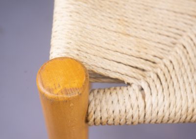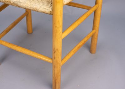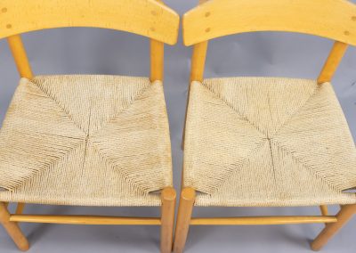 A set of four Model J39 designed by Børge Mogensen in the late 1940s for FDB Møbler and produced in the 1960s. Solid beechwood frames with original paper cord seats woven in a traditional pattern. Inspired by the functional simplicity of American Shaker furniture, this ‘people’s chair’ is an enduringly popular design which fits easily into modern and traditional settings alike.