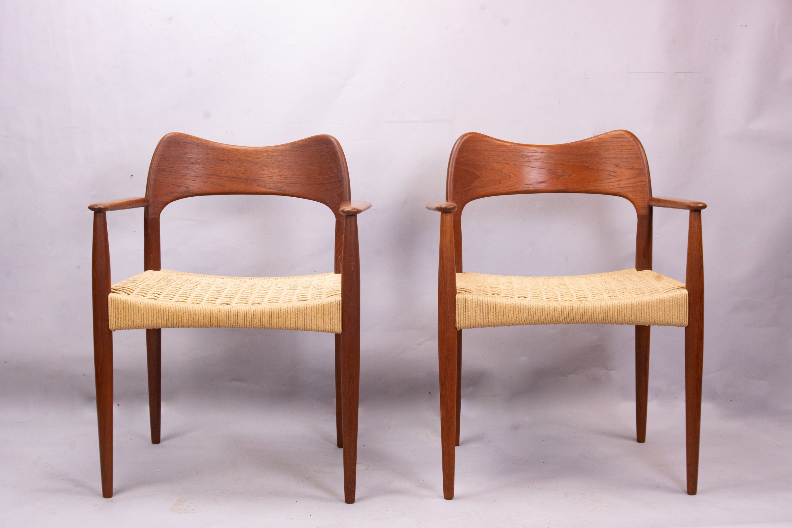 A pair of teak carver chairs designed by Arne Hovmand-Olsen and manufactured in Denmark in the 1960s by Mogens Kold.