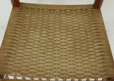 These chairs are in very good original condition with frames and seats sound and intact with no breaks or loose threads in the original paper-cord. There is some abrasion and marking to the seats consistent with their age each of them is photographed here.