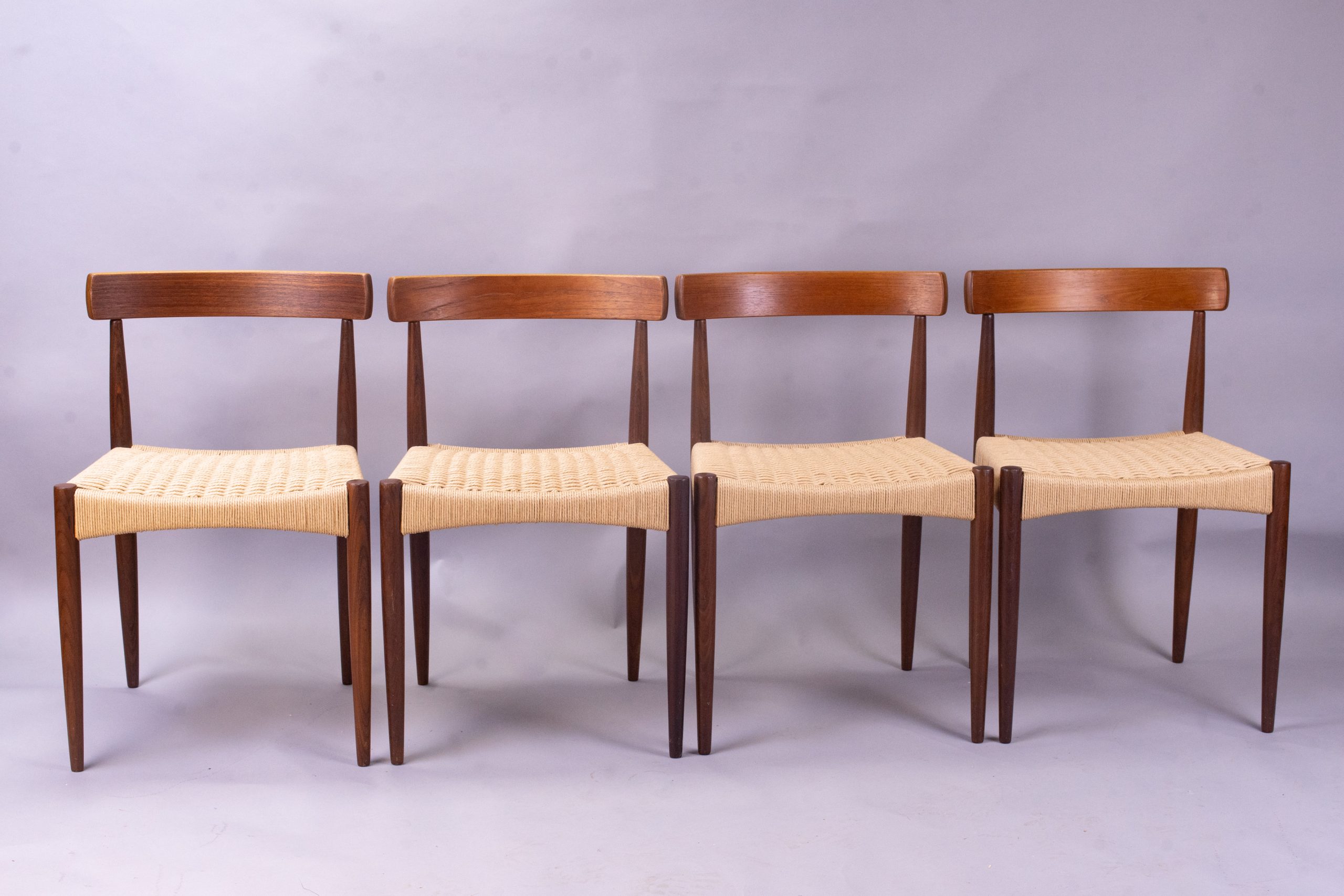 A set of 4 dining chairs designed by Arne Hovmand-Olsen and manufactured in Denmark in the 1960s by Mogens Kold.
