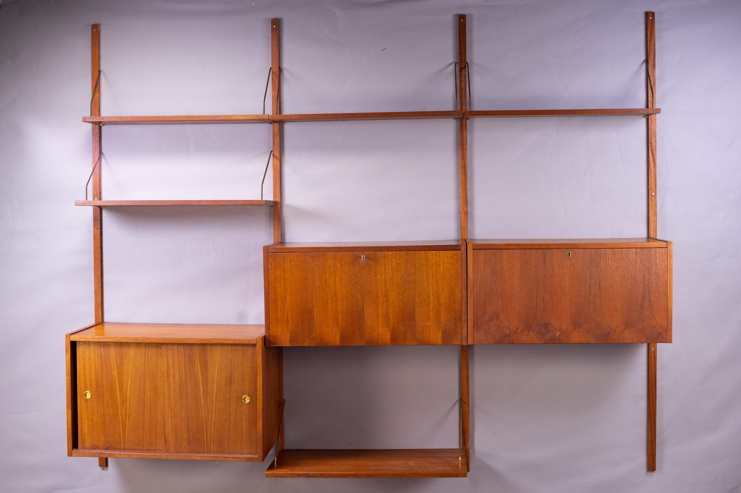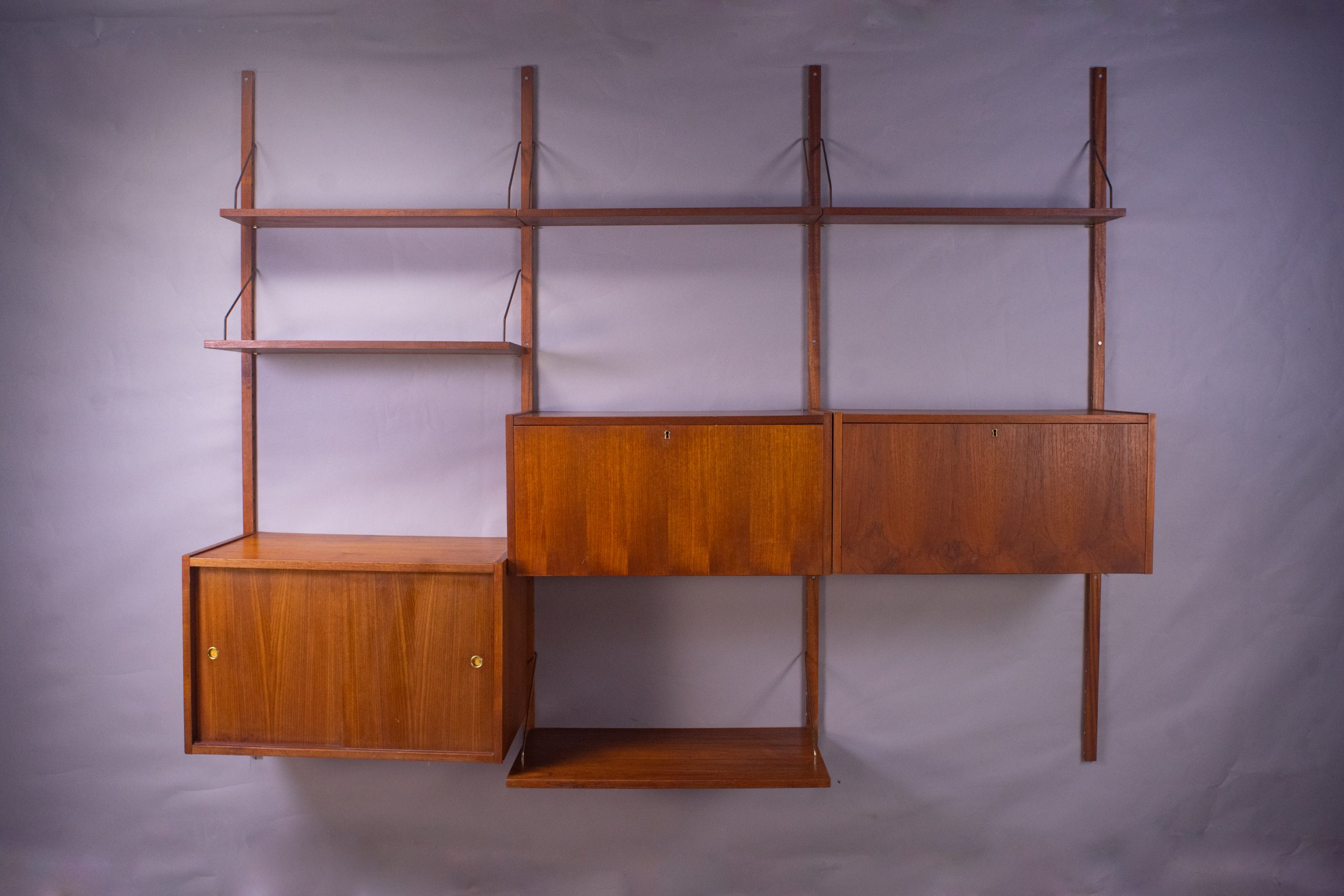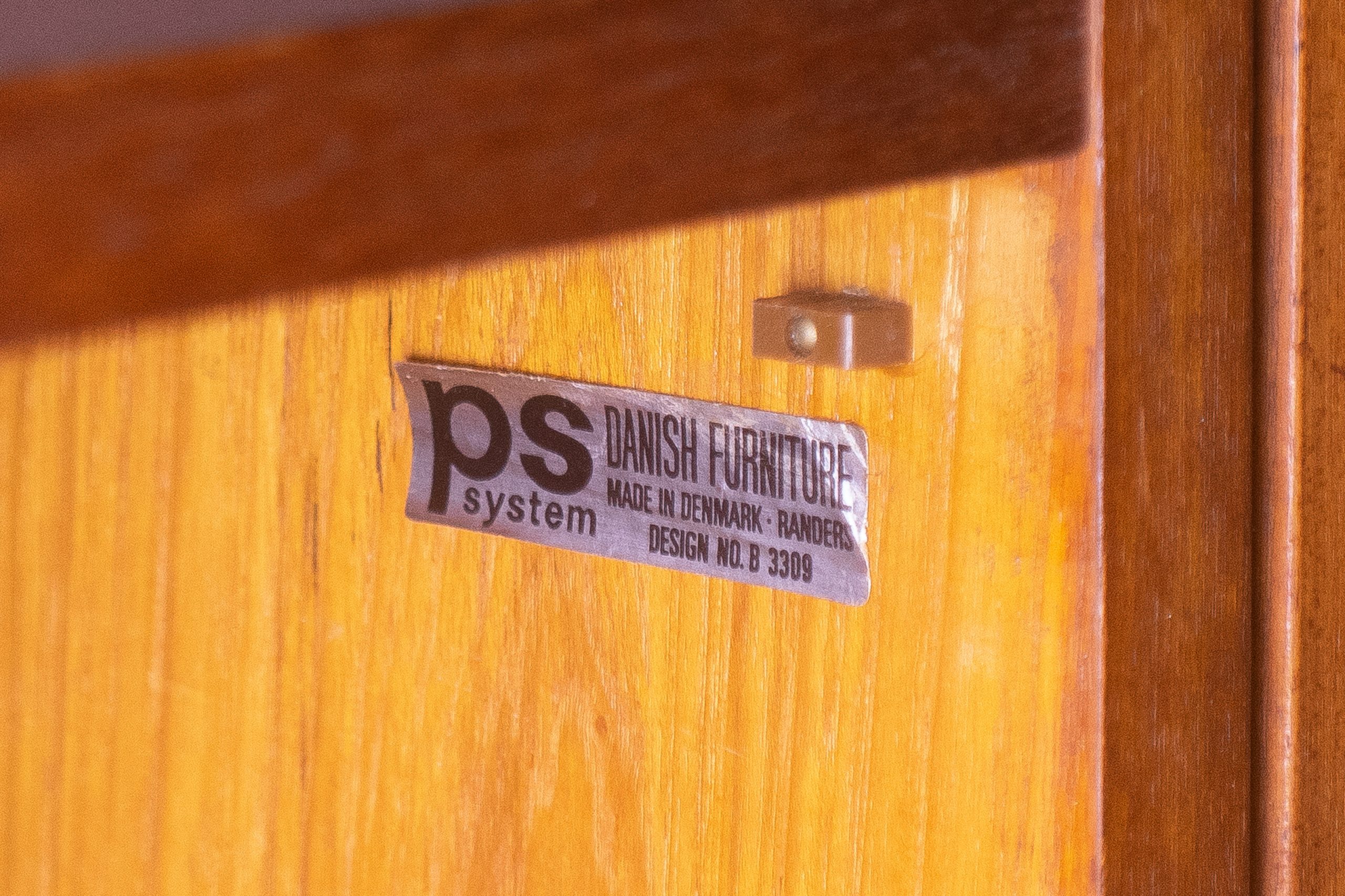 A selection of modular wall units from the popular PS System designed by Preben Sørensen in the early 1950s and manufactured in Denmark by Randers Møbelfabrik.