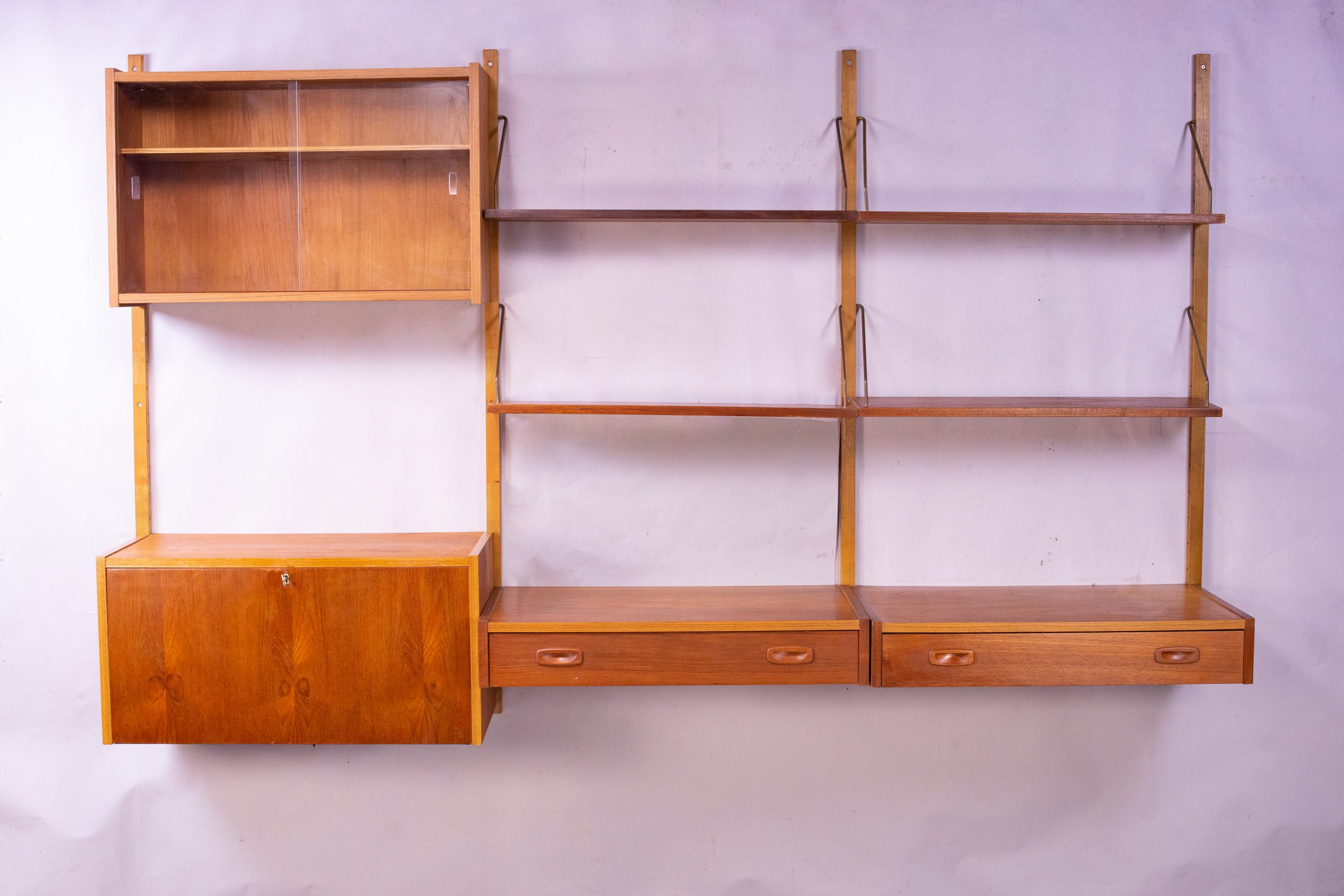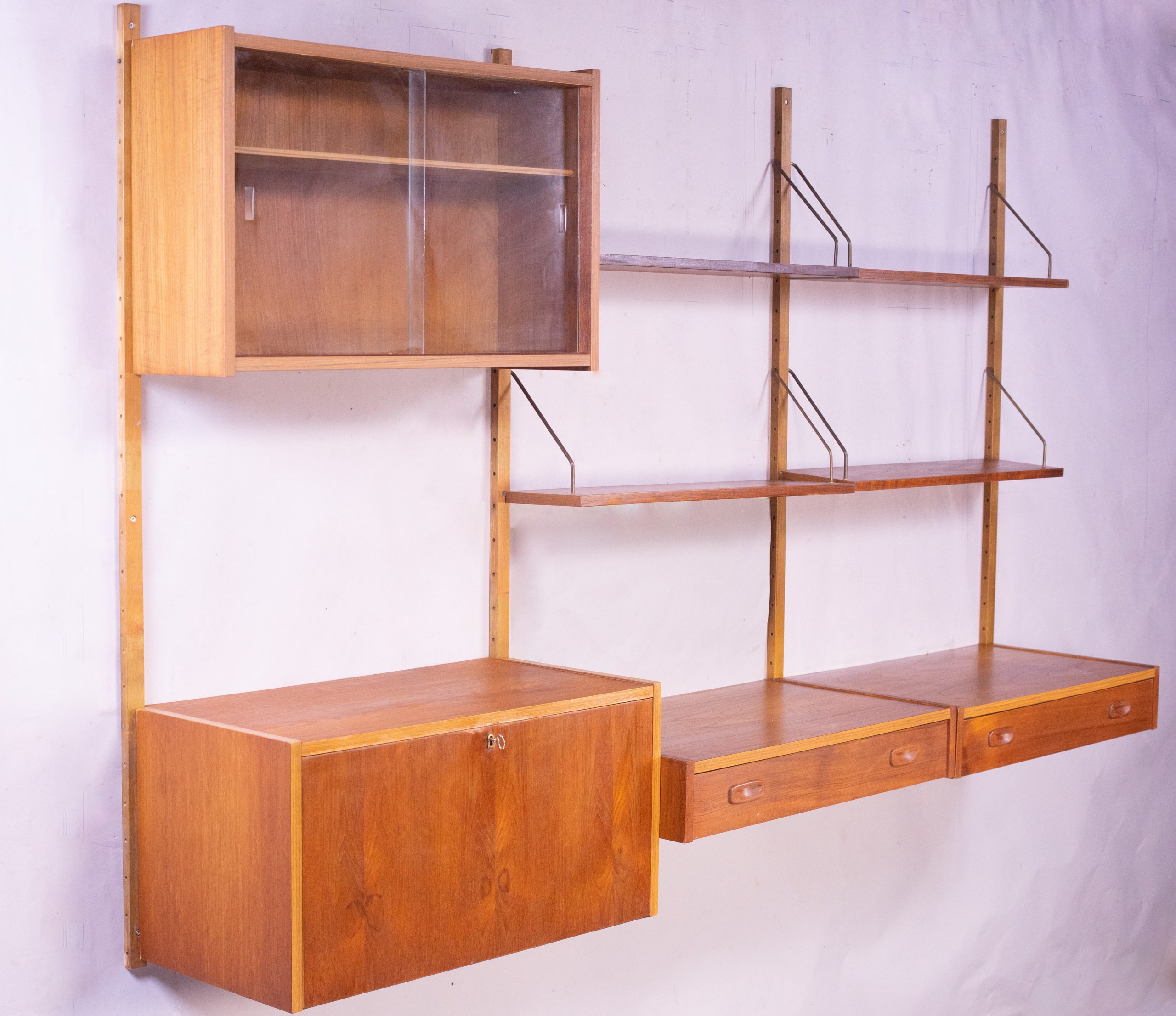 A selection of modular wall units from the popular PS System designed by Preben Sørensen in the early 1950s and manufactured in Denmark by Randers Møbelfabrik.