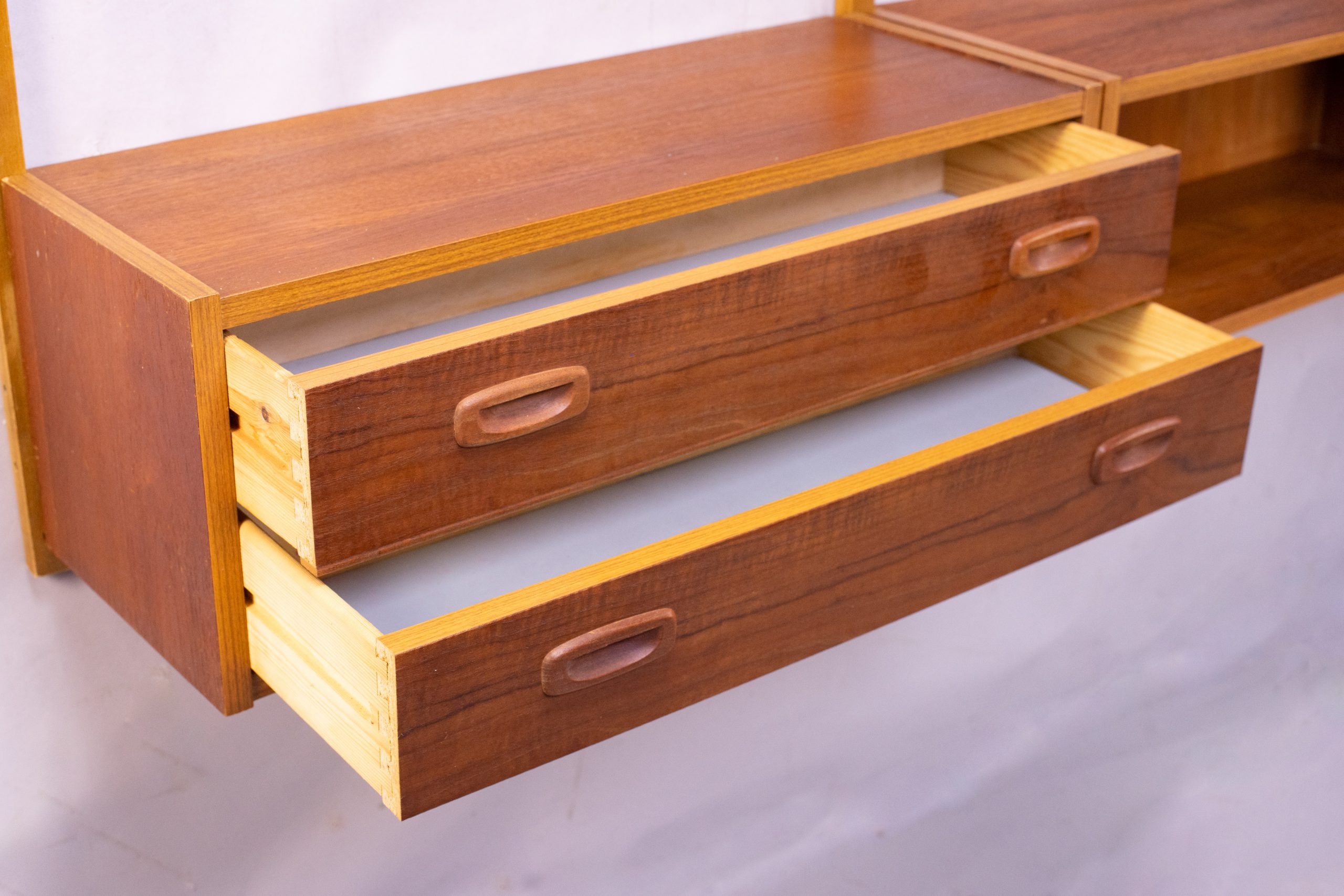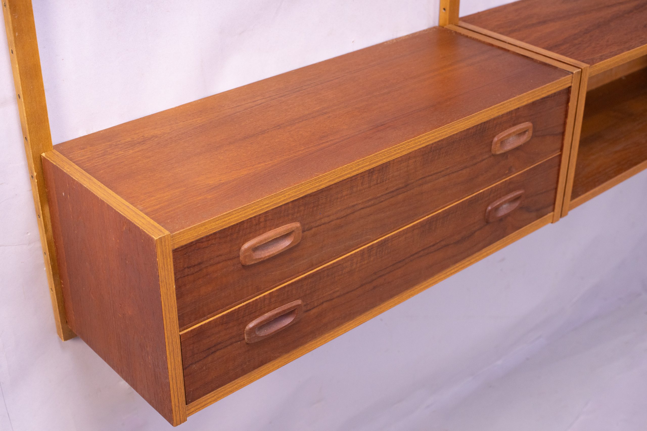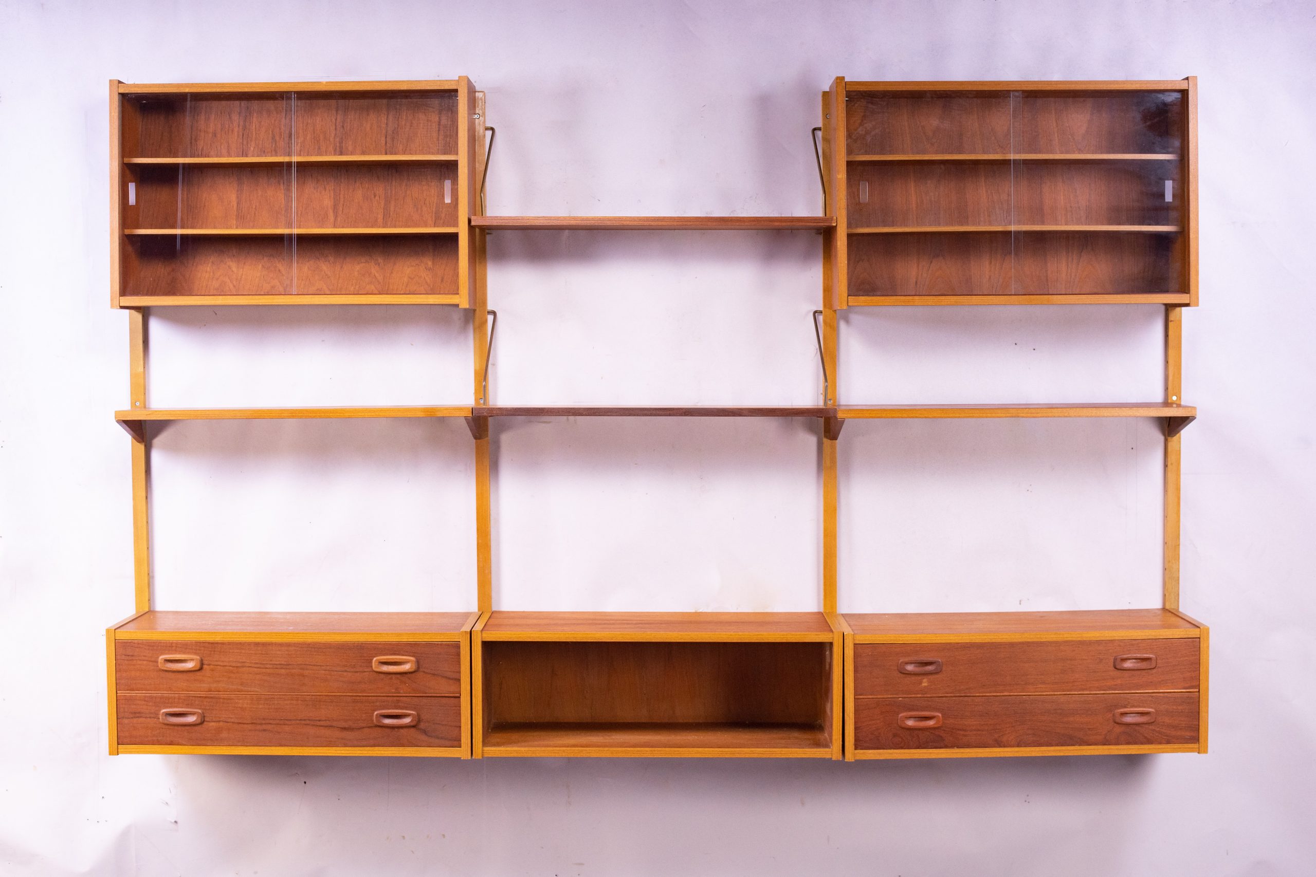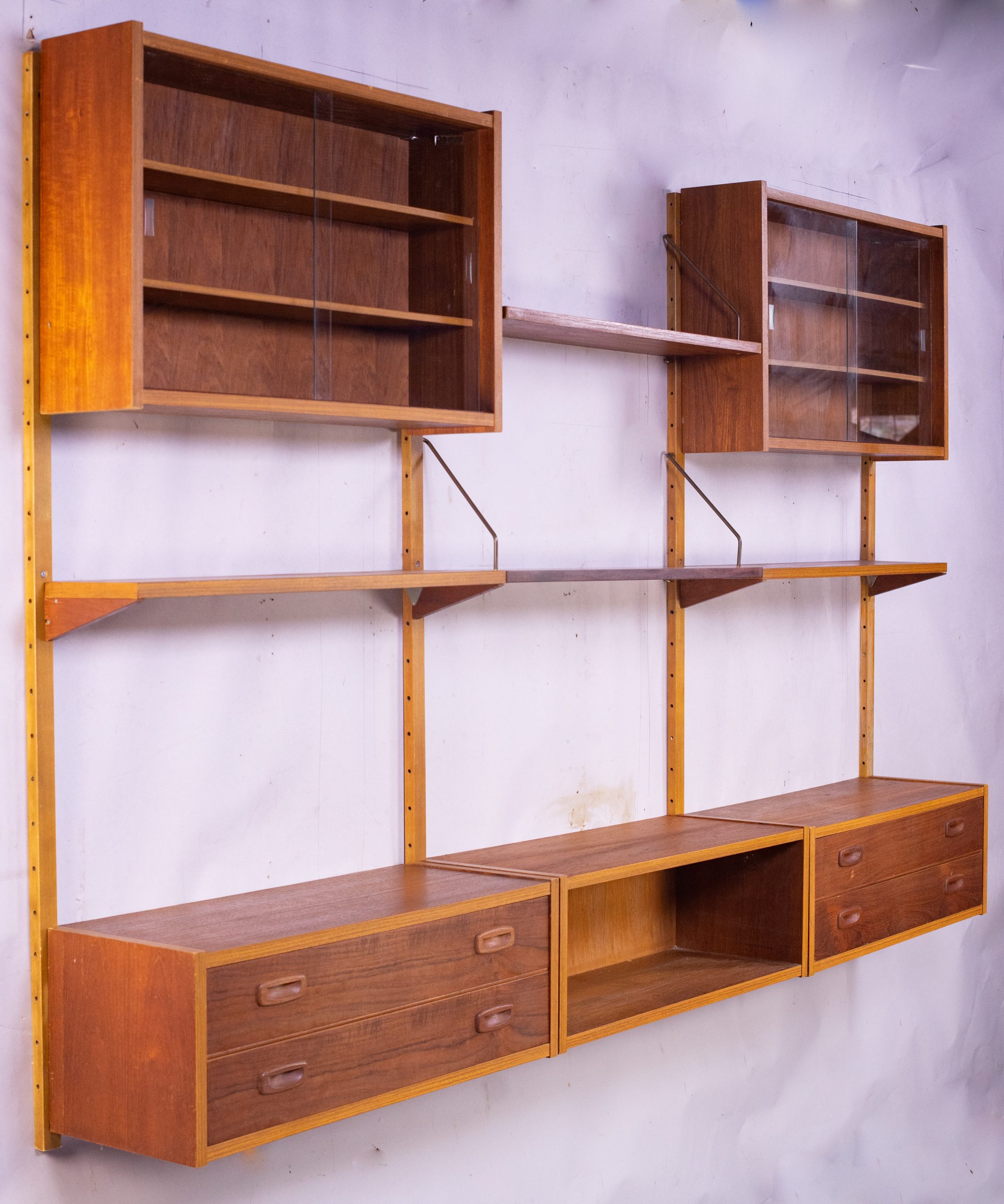 A selection of modular wall units from the popular PS System designed by Preben Sørensen in the early 1950s and manufactured in Denmark by Randers Møbelfabrik.
