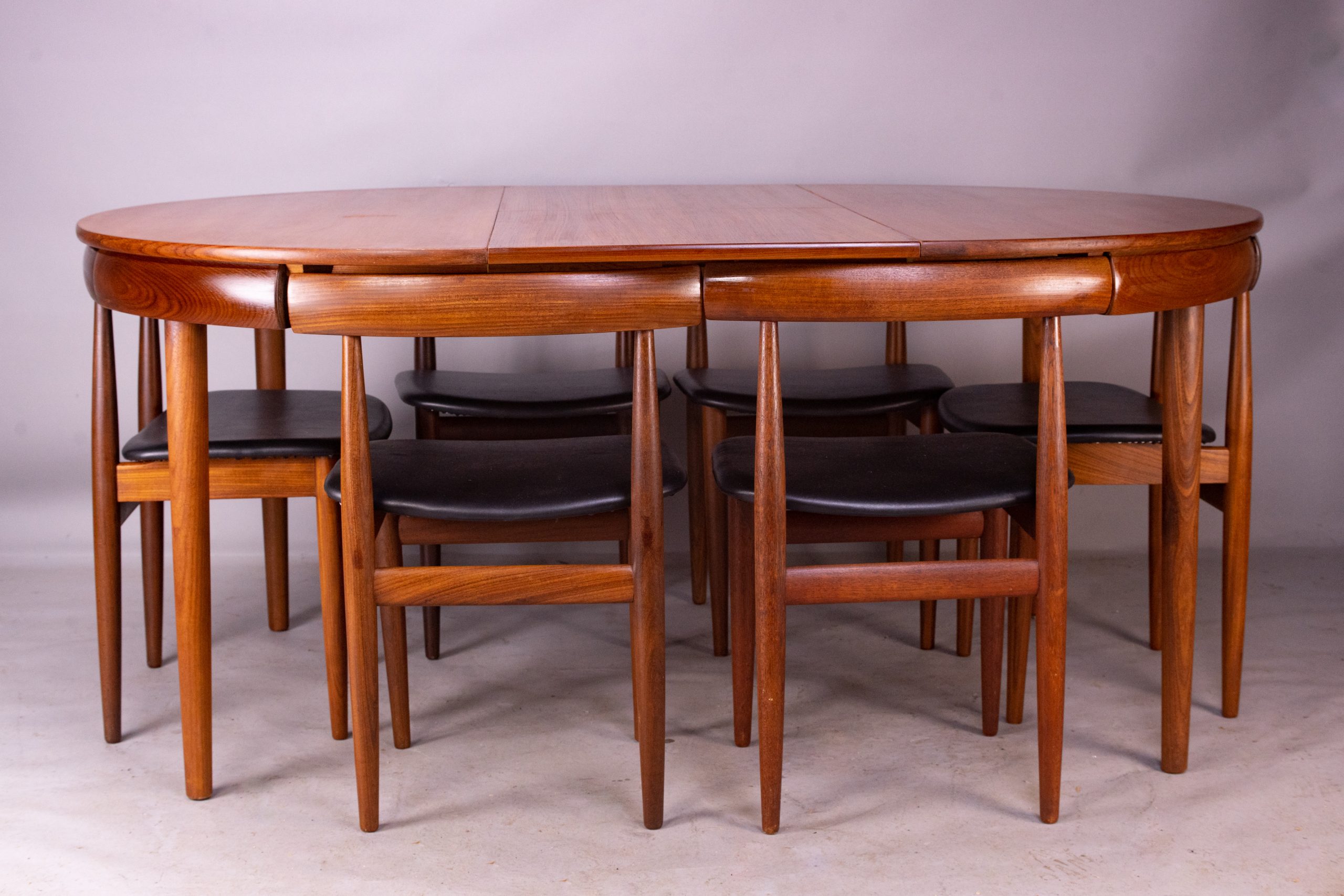 Teak dining table and 6 chair set ‘Roundette’ model designed by Hans Olsen and produced by Frem Røjle 1960s