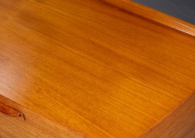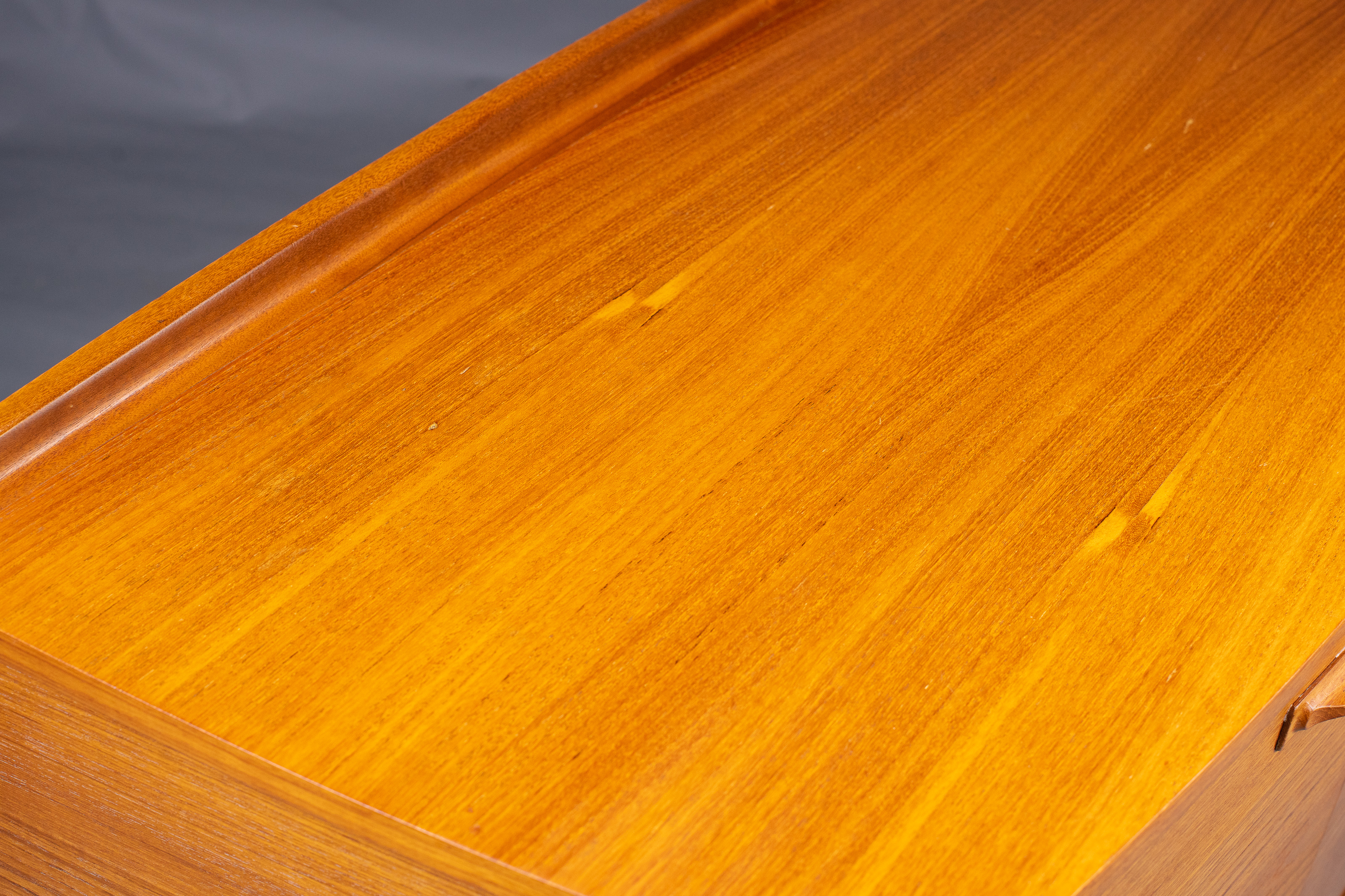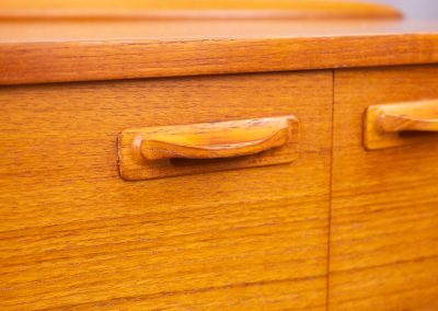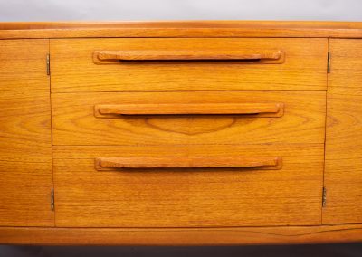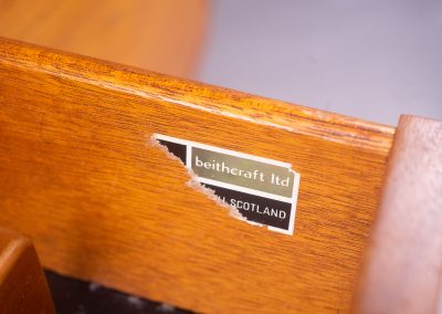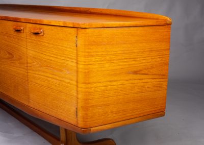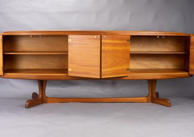 A distinctive teak sideboard designed c.1970 by Val Rossi for high-end Scottish cabinet makers Beithcraft – original maker’s label.
