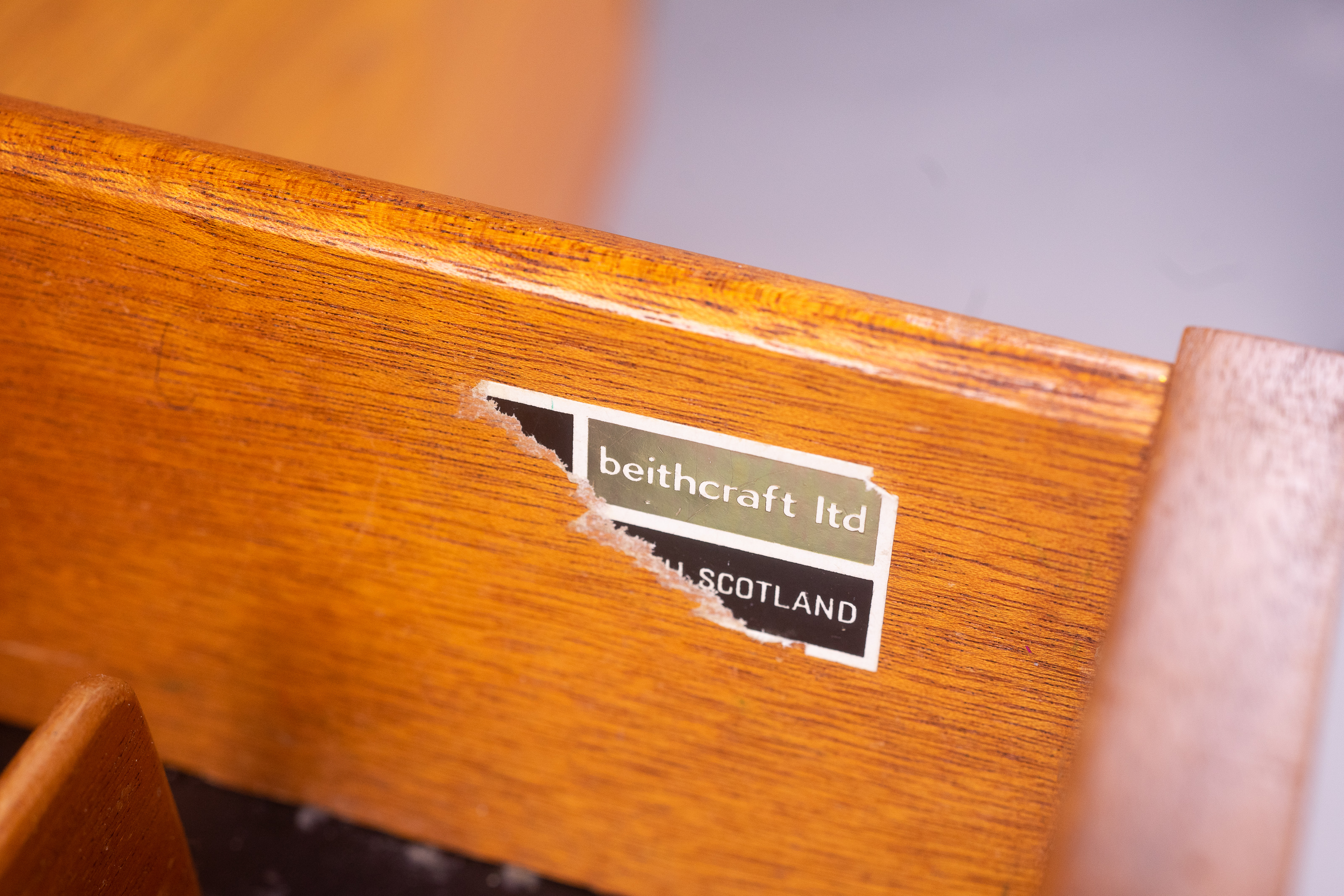 Val Rossi also worked for McIntosh before moving to the smaller firm Beithcraft to create some of their most iconic furniture. Production volumes were small and construction mostly by hand making what were expensive, premium pieces at the time. With such individual design and exceptional quality of manufacture, it is easy to see how this has become such a sought-after and now rarely-available piece of design.
