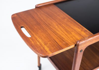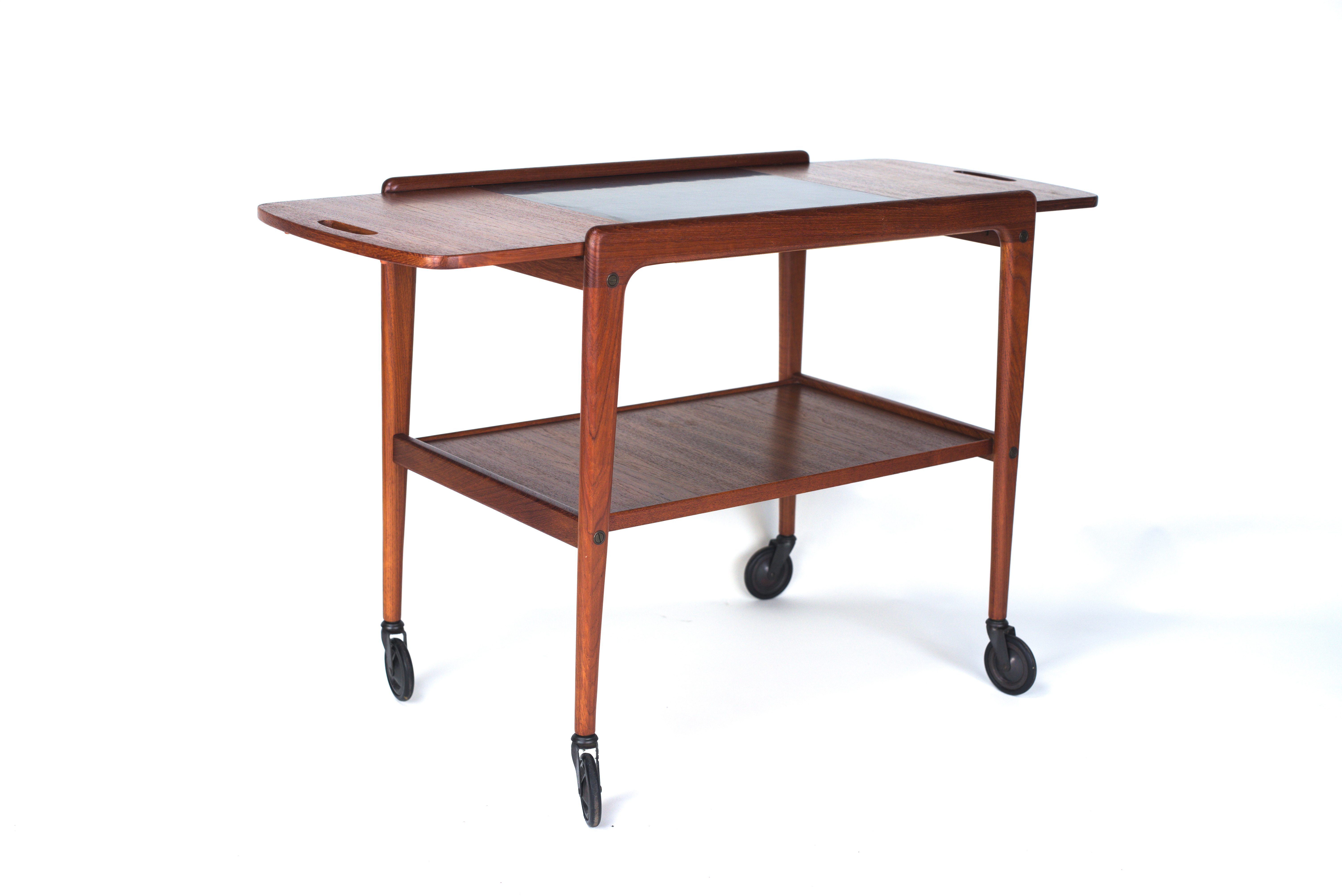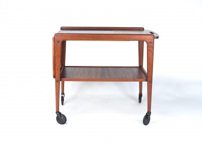 Charming compact teak drinks trolley by a major 20th-century furniture designer.