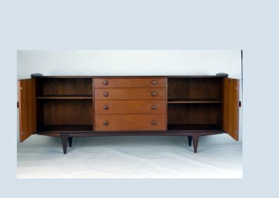 The sideboard is in excellent condition with only a few small blemishes on the top (pictured) consistent with half a century of well-cared for use. It has been gently cleaned and re-coated with Danish oil.